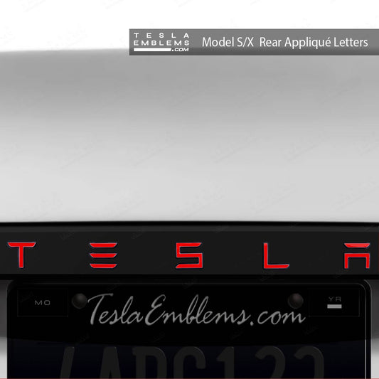 3M Gloss Dragon Fire Red Tesla Emblem Decals (Front + Back) | Model X