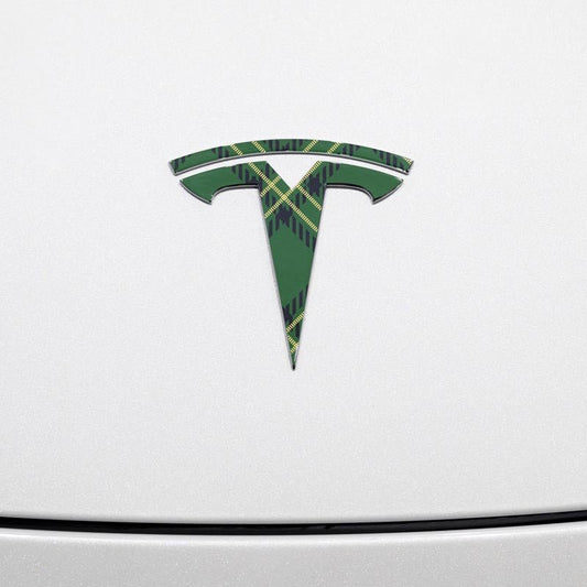 Green Plaid Tesla Emblem Decals (Front + Back Emblem Decals)
