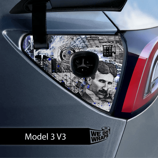 Nikola Tesla Steampunk / Trash Polka Tesla Charge Port Wrap | Model 3