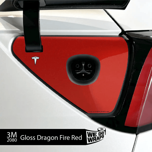 3M Gloss Dragon Fire Red Tesla Charge Port Wrap | Model Y