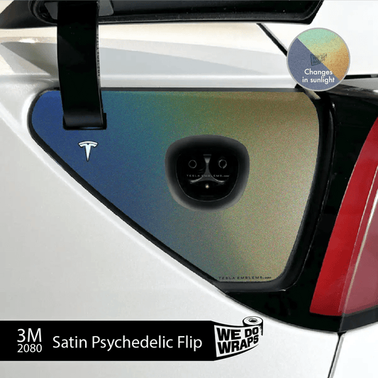 3M Satin Psychedelic Flip Tesla Charge Port Wrap | Model Y