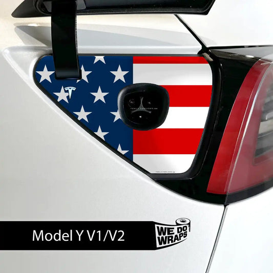Ghost Black Patriot Flag Tesla Charge Port Wrap | Model X
