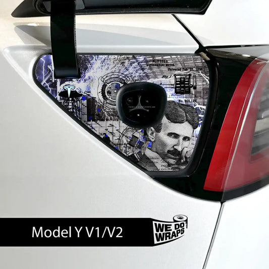 Nikola Tesla Steampunk / Trash Polka Tesla Charge Port Wrap | Model Y
