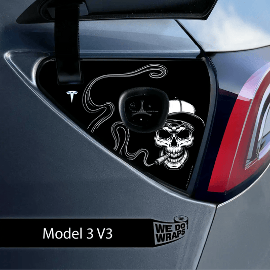 Smoking Skull Art Tesla Charge Port Wrap | Model 3