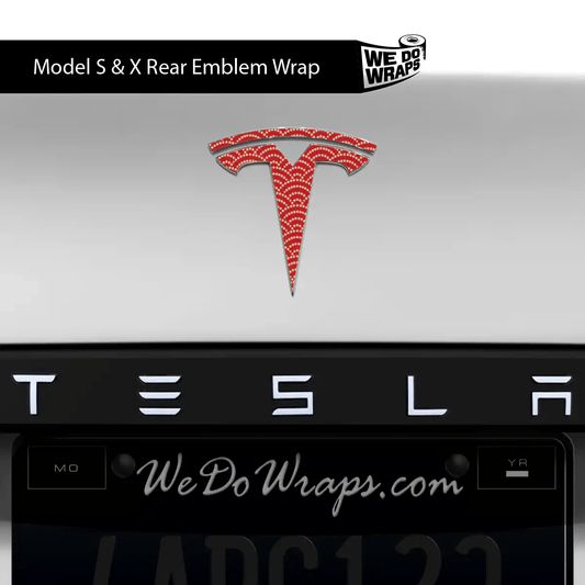 3M Gloss Dragon Fire Red Tesla Emblem Decals (Front + Back) | Model S
