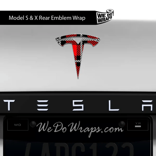Tartan Plaid Tesla Emblem Decals (Front + Back Emblem Decals) | Model X