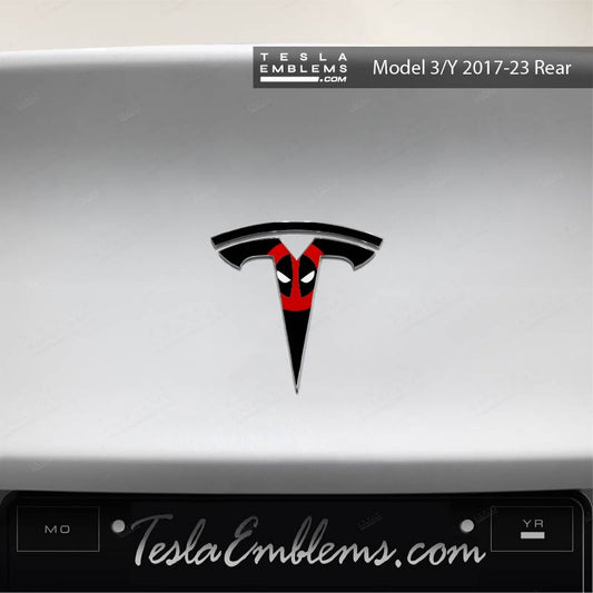 Deadpool Tesla Emblem Decals (Front + Back) | Model 3