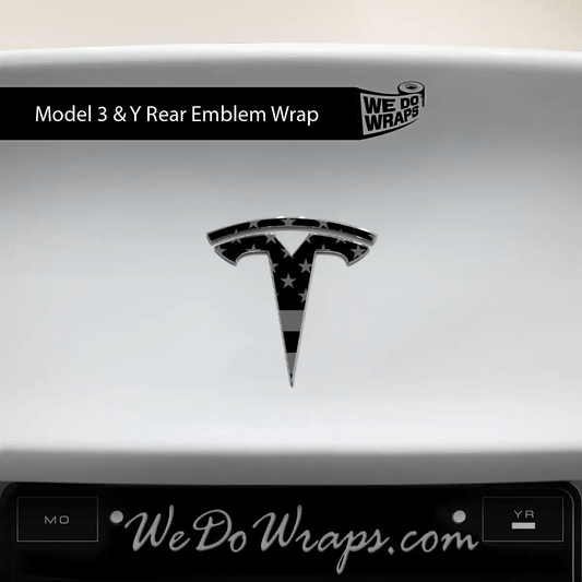 Ghost Black Patriot Flag Tesla Emblem Decals (Front + Back) | Model 3