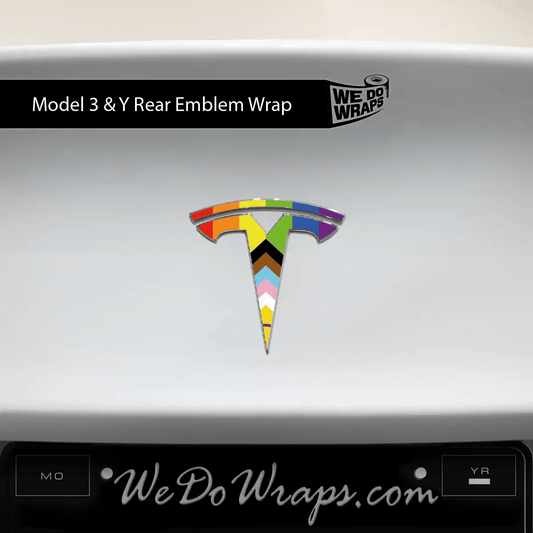 LGBTQ+ Pride Flag Tesla Emblem Decals (Front + Back) | Model 3