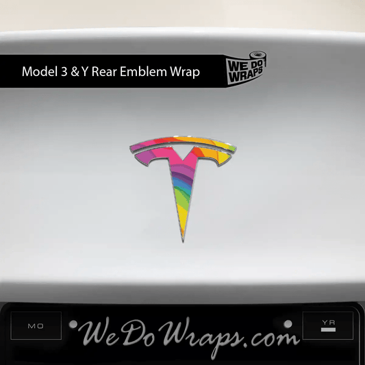 Layered Rainbow Tesla Emblem Decals (Front + Back) | Model 3