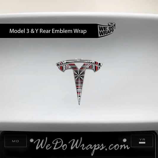 Plaid Tesla Emblem Decals (Front + Back) | Model 3
