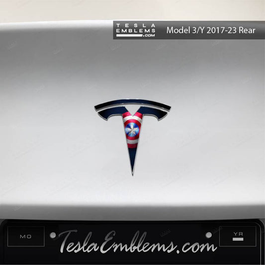 Captain America Tesla Emblem Decals (Front + Back) | Model 3