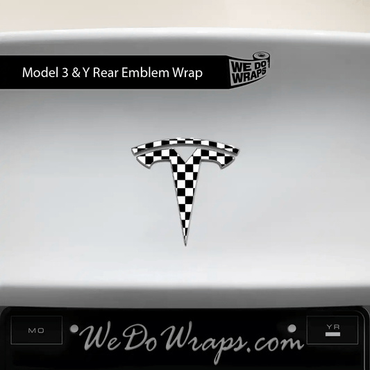 Checkered Tesla Emblem Decals (Front + Back) | Model 3
