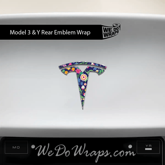 Floral Meadow Tesla Emblem Decals (Front + Back) | Model 3