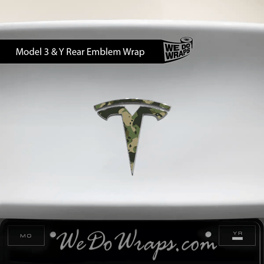Camo Tesla Emblem Decals (Front + Back) | Model 3