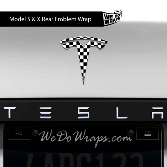 Checkered Tesla Emblem Decals (Front + Back) | Model X