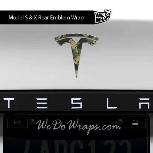 Camo Tesla Emblem Decals (Front + Back) | Model X