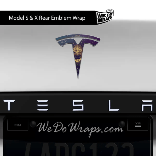 Tarot Sun and Moon Tesla Emblem Decals (Front + Back) | Model X