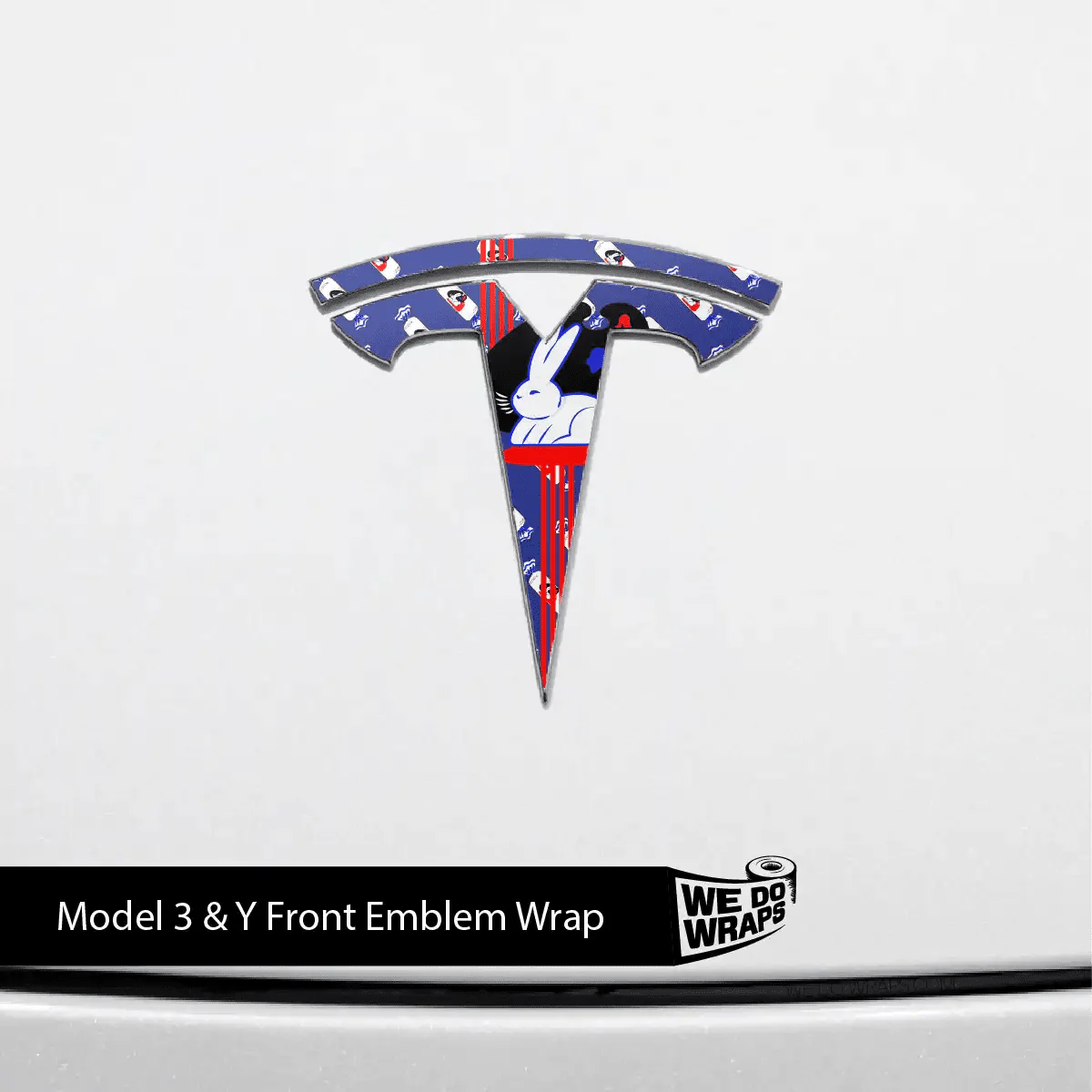 White Rabbit Tesla Emblem Decals (Front + Back) | Model 3