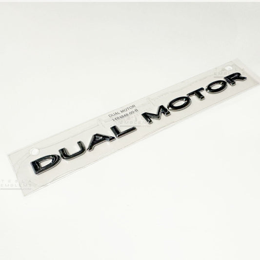 “Dual Motor” Chrome Tesla Emblem | Genuine OEM Original Rear Trunk Badging