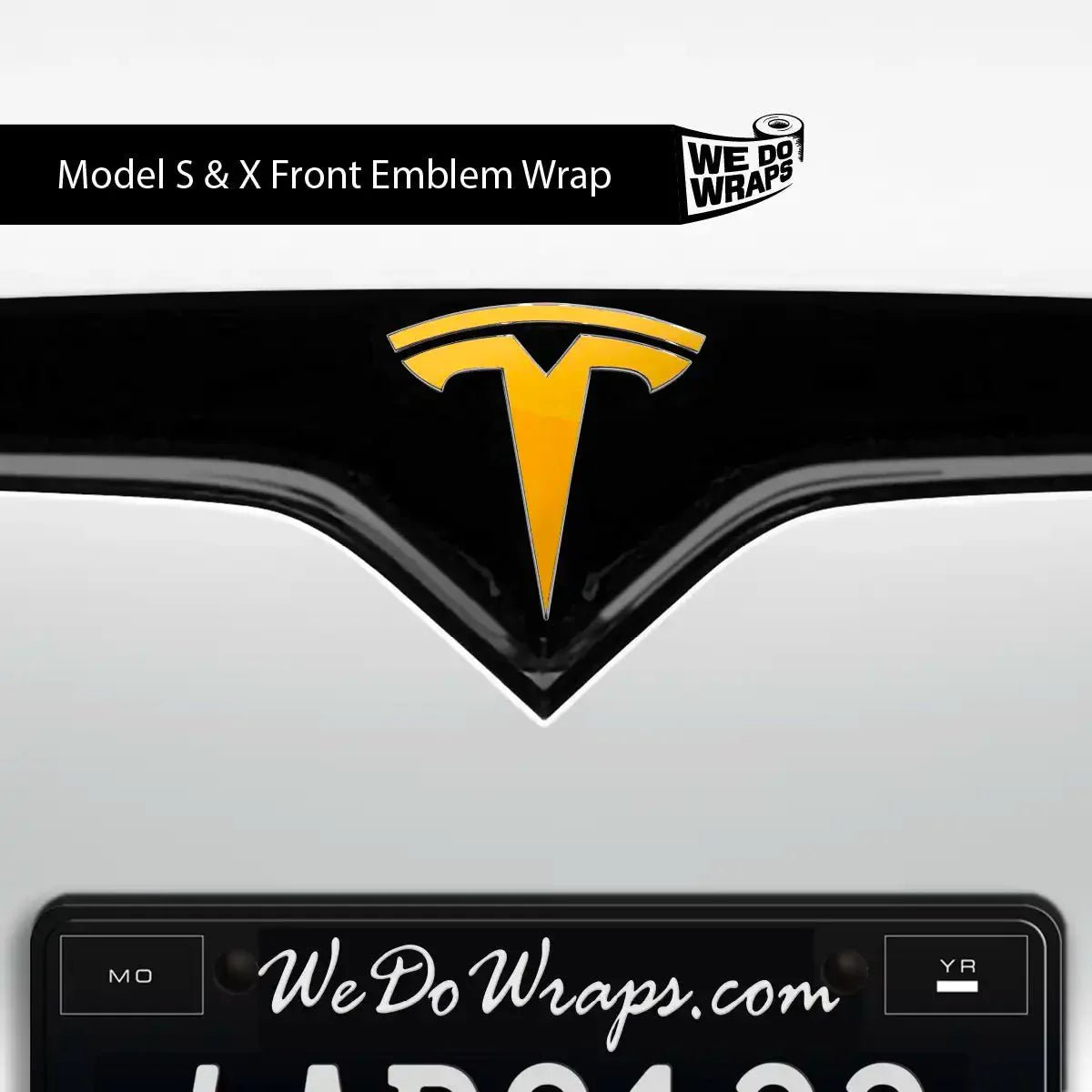 3M Gloss Sunflower Yellow Tesla Emblem Decals (Front + Back) | Model S