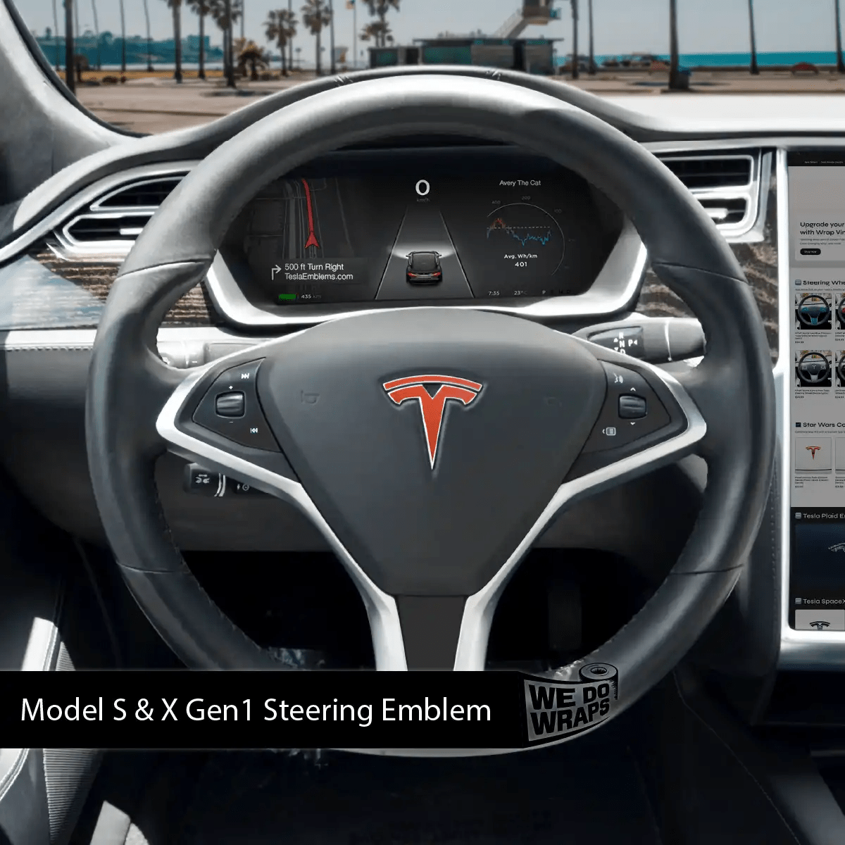 3M Gloss Dragon Fire Red Tesla Steering Wheel Emblem Decal | Model S